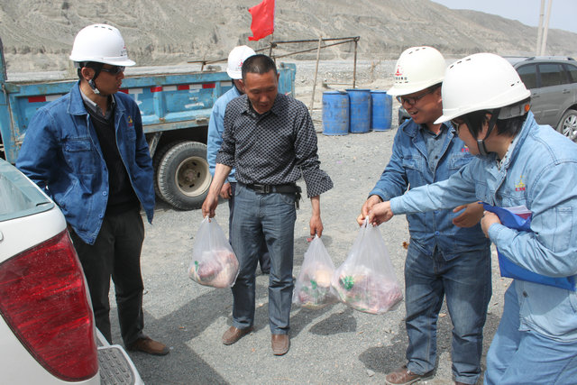 (通訊員 葉兆英 李維維)427日,獨山子工區總支書(shū)記鄧武輝帶領(lǐng)工會(huì )主席等工作人員為奮戰在古爾圖、五五工業(yè)園區等五個(gè)施工現場(chǎng)的200多名施工人員送去了150公斤大肉和節日的問(wèn)候及真誠地祝福。