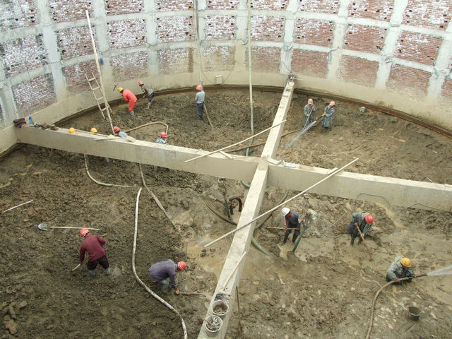 其中,該工程基礎埋深較深,大部分處于地下水位以下,且土質(zhì)為砂性土,流動(dòng)性大。根據現場(chǎng)環(huán)境、地位和土質(zhì)情況,該項目部班子成員集體協(xié)商,制定專(zhuān)項施工方案,經(jīng)甲方與公司審核通過(guò),地基采取沉井法支護基坑,沉井為磚混結構,沉井規格為18m(內徑), 8.6米深。該項工程自開(kāi)工即日起,以勞動(dòng)競賽為契機,帶動(dòng)現場(chǎng)管技人員和勞務(wù)人員以150%的干勁,積極投身到建設施工大潮中,現場(chǎng)呈現出大干快上的競賽氛圍。截至目前,該項工程已完成施工產(chǎn)值40多萬(wàn)元,完成總計劃的30%。