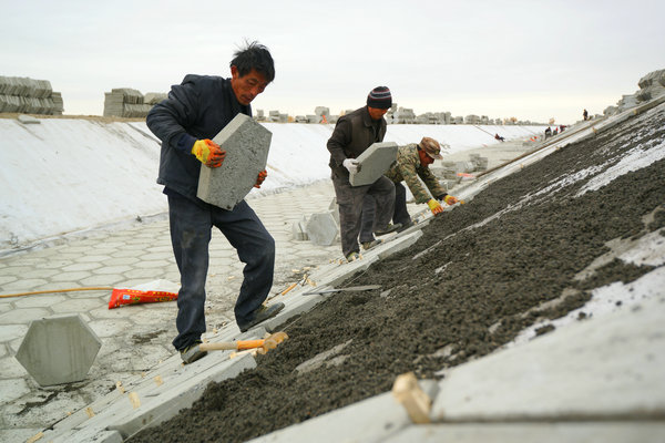 滿(mǎn)天陰沉,秋風(fēng)瑟瑟。而在奎河公司承建的123團東支干渠防滲改建工地上,卻是彩旗飄揚,一派大干快上、熱火朝天的勞動(dòng)場(chǎng)景。