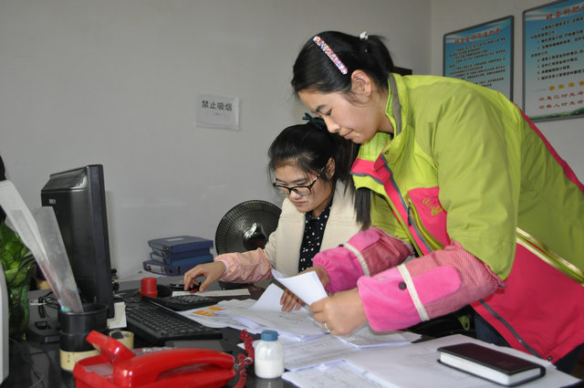 圖為:財務(wù)人員與材料科人員正在核對賬目