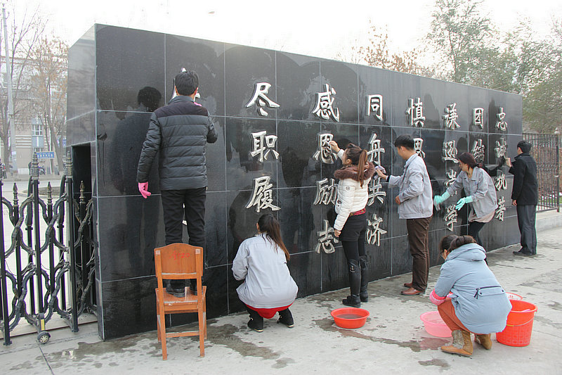 志愿活動(dòng)中,志愿者們分工協(xié)作,清洗大門(mén)口和國旗臺題字上的污漬。志愿者們認真負責地做著(zhù)自己的工作,細心的志愿者還將題字縫隙中的垃圾揀出來(lái),裝進(jìn)隨手攜帶的塑料袋內。經(jīng)過(guò)志愿者們的辛勤勞動(dòng),大門(mén)口變得更加的整潔和干凈。