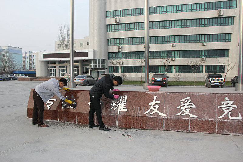 (通訊員 劉婕 段暉)1120日,由北方集團機關(guān)團支部組織的的青年志愿者服務(wù)隊,在北方集團機關(guān)冒著(zhù)嚴寒幫助警衛清洗大門(mén)的題字,維護了辦公區大門(mén)的整潔與衛生。